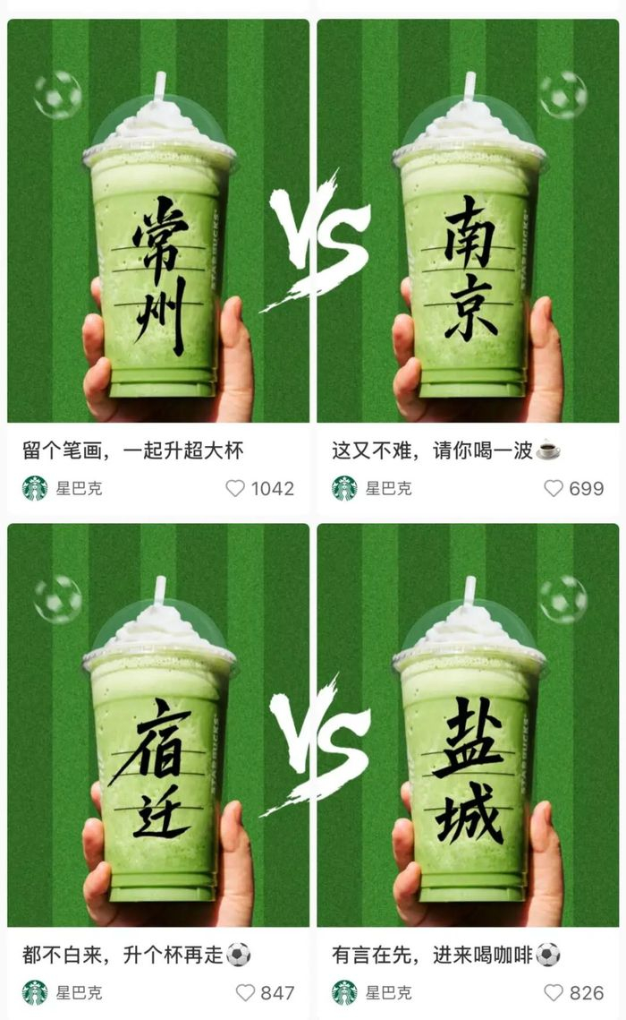 红利面前,一向走品质合作路线的星巴克也忍不住下场了。星巴克专门为第5轮苏超联赛策划了一场营销活动,6月21日-6月29日苏超联赛期间,星巴克在宿迁、常州、连云港等六个主场城市开启“升杯”活动,只要比赛当天在门店喊出支持的队伍,即可获得免费升级超大杯的福利。