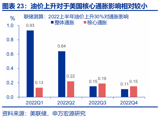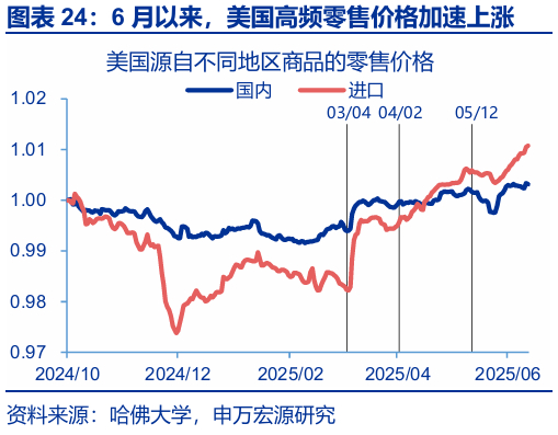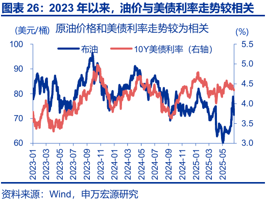 第一,如油价上涨显著推升通胀,美联储或面临紧缩压力。对美国而言,能源分项在CPI中占比6.2%,油价中枢每变动10美元/桶对于全年CPI通胀的影响约0.2个百分点。下半年,在关税通胀效应逐步显现的阶段,如果油价上涨再“推波助澜”,美联储的紧缩压力或明显上升。