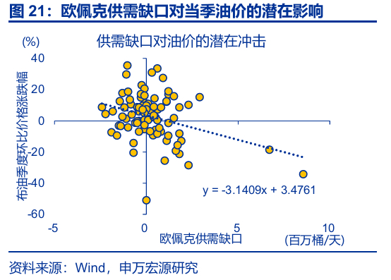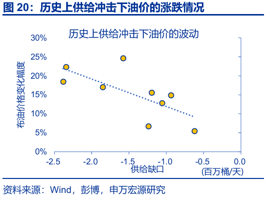 从过往供给冲击复盘来看,极端情形下油价或可升至130美元/桶。历史复盘来看,2000年以来的原油供给曾出现过11次规模较大的冲击。平均而言,每100万桶/天的供给冲击对油价影响约10%;战争、制裁等冲击影响更持久。如海峡被完全封锁,油价或升至130美元/桶以上。