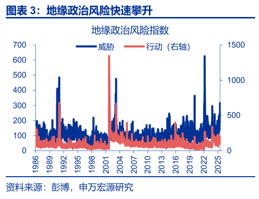 6月13日以来,伊以冲突一度快速升温,伊朗再度威胁要封锁霍尔木兹海峡。特朗普上任后,再度向伊朗施压试图让其放弃“铀浓缩”,但4月以来的5轮谈判并不顺利。6月13日,以色列针对伊朗发起“Rising Lion”行动,袭击伊朗多处军事设施,并杀死数名伊朗高级军事领导人;伊朗随即展开报复。从地缘政治风险指数来看,截至6月16日,地缘威胁快速攀升、已创俄乌冲突以来新高。6月22日,在美方介入后,伊朗议会通过封锁霍尔木兹海峡的决议,只差最高国家安全委员会做出最后批准。6月24日,伊以宣布停火,但停火后双方仍有摩擦,冲突尚未完全平息。