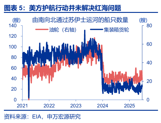 伊朗封锁霍尔木兹海峡具有较高可行性,但也面临经济约束与海湾国家的压力。霍尔木兹海峡最窄处仅21海里,水雷的大面积布置、无人机的广泛使用、导弹的完全覆盖等(1980-88年“油轮战争”期间,约55%的航运攻击为导弹攻击),可对海峡通航造成威胁。2024年以来,红海通行船只数量并未随美军护航行动开展而恢复,足以证明伊朗具备封锁霍尔木兹海峡的能力。但一方面,伊朗深受滞胀困扰,封锁海峡对伊朗财政收入有明显冲击;另一方面,伊拉克、沙特等海湾国家高度依赖石油开采,贸然封锁也会加深与其他中东邻国的隔阂。这或成伊朗封锁海峡的潜在掣肘。