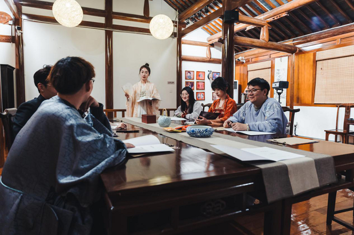 “八大家族”开启财富争夺战,挑战任务、赢取银票、兑换午餐……6月20日,由江阴“极地营”策划的“浔商风云”大型沉浸式实景剧本杀团建在湖州南浔古镇上演。