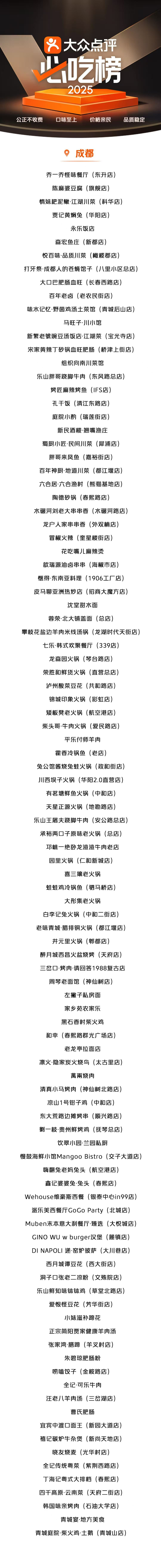 2025大众点评必吃榜正式揭晓,成都102家商户上榜