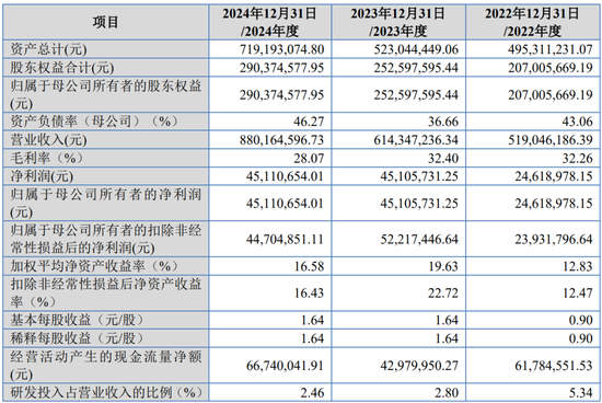 报告期内,公司营业收入分别为36,075.81万元、37,696.03万元和45,445.98万元,归属于发行人股东扣除非经常性损益后的净利润分别为7,554.31万元、7,870.12万元和11,336.89万元。