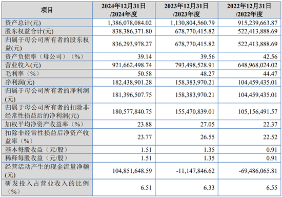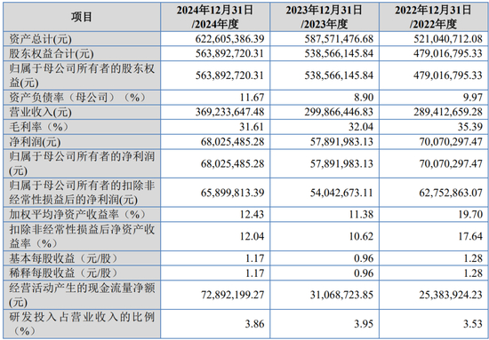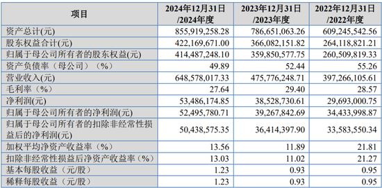 报告期内,公司营业收入分别为39,726.61万元、47,577.62万元和64,857.80万元,归属于发行人股东扣除非经常性损益后的净利润分别为3358.35万元、3641.43万元和5043.85万元。