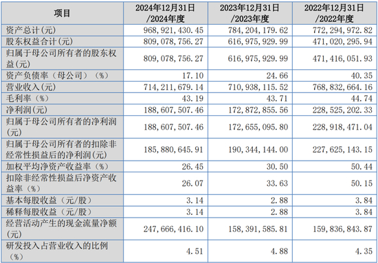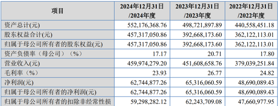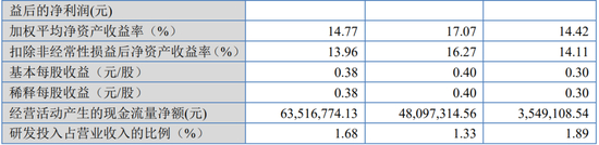 报告期内,营业收入分别为76,883.27万元、71,093.81万元、71,421.17万元;扣除非经常性损益后归属于母公司所有者的净利润分别为22,762.51万元、19,034.41万元和18,588.06万元。