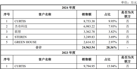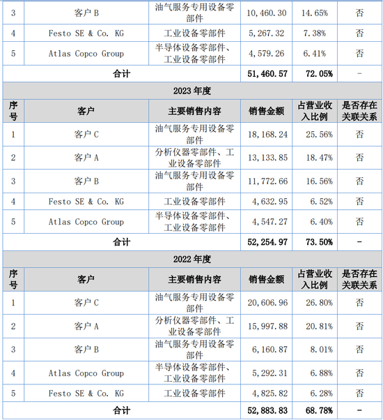 报告期各期,公司前五大客户收入占同期营业收入比例分别为68.78%、73.50%和72.05%,前五大客户相对集中。