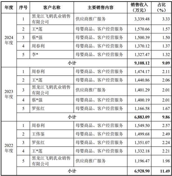 报告期各期,公司向前五名客户的销售收入金额分别为10,613.62万元、12,526.21万元和12,249.21万元,占营业收入的比例分别为28.00%、27.74%和26.63%,占比逐年降低,主要系部分客户需求增加及公司不断开发新客户等导致公司销售规模扩大所致。
