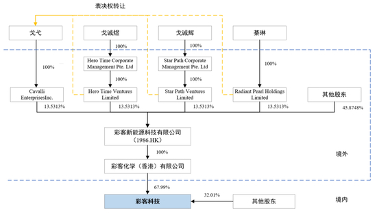 同时,截至2024年12月31日,戈弋先生通过Cavalli Enterprises Inc.持有彩客新能源13.5313%的股权,通过表决权转让安排有权行使Hero Time Ventures Limited、StarPath Ventures Limited、Radiant Pearl Holdings Limited对于彩客新能源合计40.5939%的表决权,合计持有彩客新能源54.1252%的表决权,能够实际控制彩客新能源。