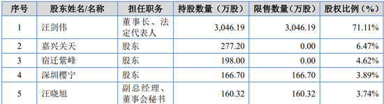 汪剑伟直接持有发行人71.11%的股份,通过樱宁投资间接控制发行人3.89%的股份表决权,直接、间接合计控制公司75.00%的股份表决权,并担任发行人的董事长,为公司实际控制人。