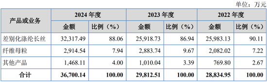 公司主要从事差别化涤纶长丝和纤维母粒的研发、生产和销售,主要产品是采用原液着色技术生产的差别化有色涤纶长丝(POY、DTY、FDY和ATY等)和纤维母粒。自成立以来,公司专注于差别化涤纶长丝领域创新发展,特别是色牢度高、色彩种类丰富、高品质的有色涤纶长丝,并注重与再生涤纶、生物基涤纶技术融合,促进产品迭代升级。公司产品主要应用于汽车内饰、户外用品等对于产品质量及色牢度要求较高的领域。公司积极响应国家节能环保战略,致力于推动化学纤维行业的可持续发展,为下游客户提供具有节能环保优势的产品,实现经济效益与社会责任的协同发展。