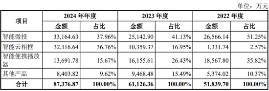 公司主要从事智能视觉终端产品的设计开发、制造和销售,专注于新型显示技术的创新与应用。凭借深厚的技术积淀,公司已建立起涵盖光学开发、结构设计、软硬件集成、工艺制造及检测工艺的全链条技术体系。目前,公司产品矩阵以智能微投、智能云相框及智能便携播放器为核心,致力于为全球用户提供跨场景的沉浸式视觉体验解决方案。