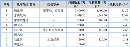 顾建华持有公司24,000,000股股票,持股比例为42.22%,为公司控股股东。顾建华作为常州欣润和常州欣建达的执行事务合伙人,分别通过常州欣润和常州欣建达间接控制公司25.49%和5.28%的股份,合计控制公司72.99%股份,为公司实际控制人。