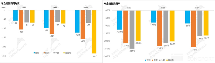 赛力斯在2024年的销管费用率也达到了惊人的16%(而整体毛利率也才24%),同样也是理想销管费用率的接近2倍水平。