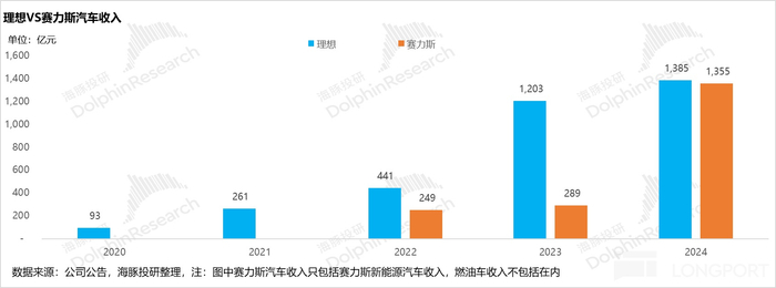 a. 凭借华为赋能实现弯道超车:赛力斯正式推出问界品牌是在2022年,而与华为智选车模式深化合作后的调整还是在2023年,也就是说,赛力斯仅用1-2年的时间,就实现了几乎和理想一样的卖车收入体量,而目前在市值方面也能与理想打个平手。