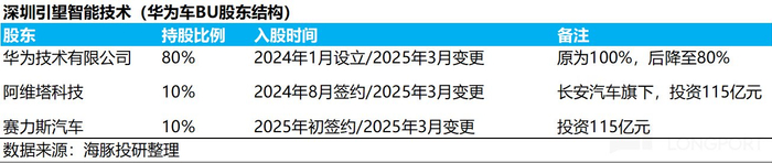 ② 对于华为车BU的股权投入115亿:2024年8月,赛力斯以现金方式去购买引望(原华为车BU)10%股权,交易金额115亿元。
