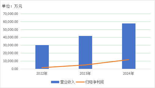 与此同时,公司经营规模加速扩张。2022年至2024年,广信科技实现营业收入分别为30,428.93万元、42,007.14万元和57,754.18万元,CAGR为37.77%;实现归母净利润分别为1,472.36万元、4,940.44万元和11,617.18万元,CAGR达到180.89%,处于高速成长阶段。