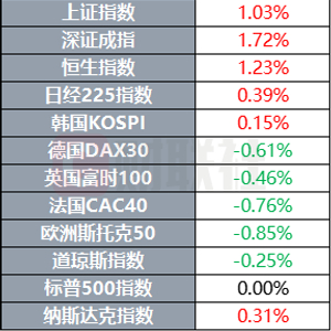 美东时间周三,美股三大指数收盘涨跌不一,纳指涨0.31%,标普500指数平收,道指跌0.25%。