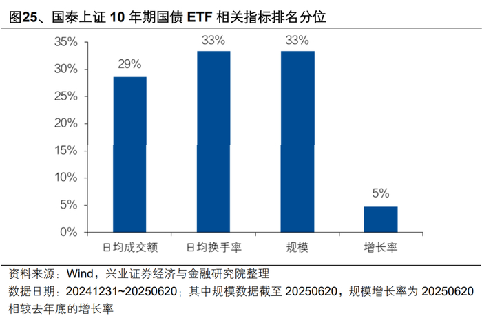 和同类产品相比,国泰上证10年期国债ETF多项关键指标排名靠前。和其它债券ETF(要求在2025年之前成立)相比,今年以来,国泰上证10年期国债ETF多项关键指标均排名前三分之一,产品当前规模为109亿元,相较去年底规模增长率达316%,交投活跃,受到投资者的广泛关注。