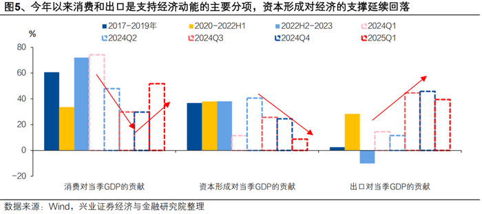 关税对基本面的影响逐渐显现,外需开始承压,基本面的环境仍然利多债市。今年以来在“以旧换新”等政策拉动下消费增速明显回升,抢出口下外需也显现出较强韧性,2025Q1经济增长的第一动能来源是消费,其次是出口,资本形成对经济的支撑则延续回落。5月经济数据表现相对分化,“国补”叠加“618”前置,消费数据表现亮眼,但出口增速下降压力开始显现,且外部环境不确定下企业扩产的投资意愿受到一定扰动,前期政策的支撑效力也在边际转弱,投资端放缓的特征依然突出。往后来看,短期抢出口效应对我国外需有一定支撑,但关税政策不确定性下,中长期仍面临外需回落的压力,基本面的环境仍然利多债市。