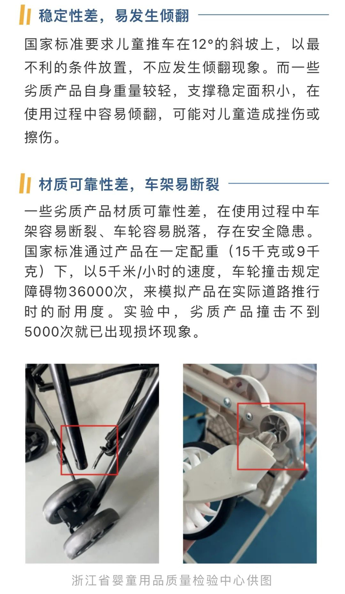 轻便型儿童推车归类为儿童推车,必须符合强制性标准GB 14748-2006《儿童推车安全要求》相关规定,而劣质产品可能存在以下安全风险: