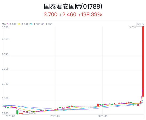 这股热潮迅速席卷至二级市场。受上述消息影响,6月25日港股市场券商股集体走强。国泰君安国际盘初大涨超100%,随后有所回落,午后再度涨超100%。