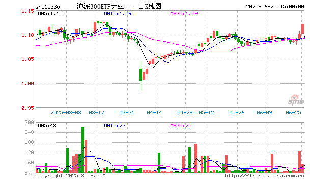 6月25日,沪深300ETF天弘(515330)涨1.63%,成交额5659.30万元。当日份额增加8400.00万份,最新份额为86.52亿份,近20个交易日份额增加8700.00万份。最新资产净值计算值为96.84亿元。