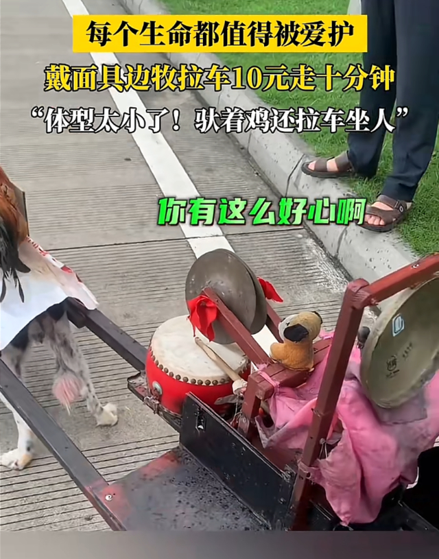 驮着乘客的狗狗被压得