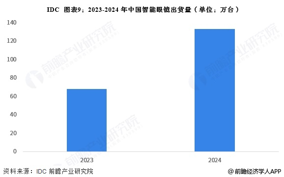 中国智能眼镜出货量近年来增速极快,2023年出货量约为68万台,2024年快速上涨至133万台,同比增长约为95.6%,接近翻番。
