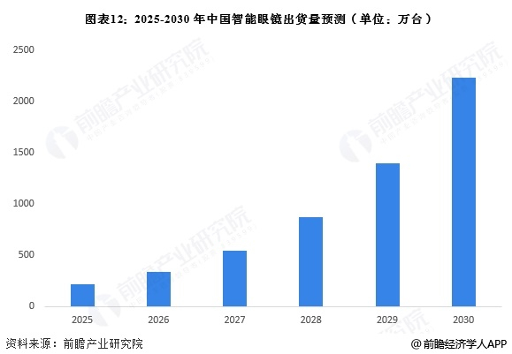 中国智能眼镜市场发展前景广阔,预计2025-2030年间中国智能眼镜出货量将按照CAGR为60%的速度快速增长,2030年出货量超过2200万台。