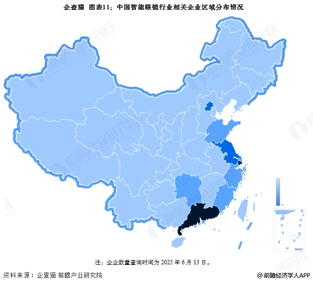 在国家及地方政府的支持下,近几年我国智能眼镜产业化快速发展,初步构建起以智能眼镜原材料、研发、制备、应用为主体的产业链。沿海地区凭借其优越的地理位置、便利的交通条件、领先的研发能力,涌现出一批生产和研发能力较强的智能眼镜企业,以广东、上海为主。