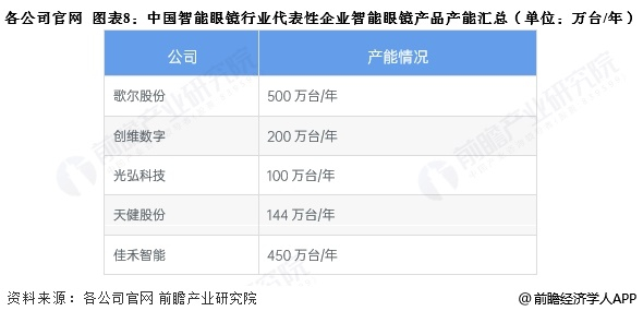 智能眼镜,尤其是AI智能眼镜在我国仍处于萌芽阶段,能够实现大规模量产的企业数量较少,其中歌尔股份、佳禾智能智能眼镜产能较高,超过450万台/年。其他产能较高的企业包括创维数字、天健股份以及光弘科技,产能分别为200万台/年、144万台/年以及100万台/年。