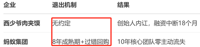 血的教训:西少爷肉夹馍联合创始人入职半年离职索要30%股权,导致品牌陷入舆论危机、融资中断——没有退出机制的合伙,如同没有灭火器的高楼
