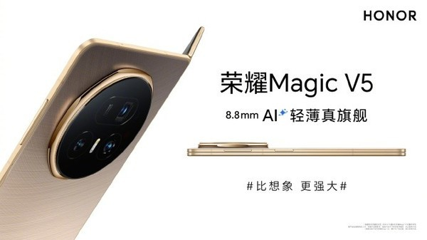 根据官方公布的信息,荣耀Magic V5将搭载一块6100mAh的青海湖刀片电池,硅含量首次达到25%,是目前行业最高。不仅如此,Magic V5还创下8.8mm全球轻薄记录,且是行业唯一搭载骁龙8至尊版满血平台折叠屏手机。
