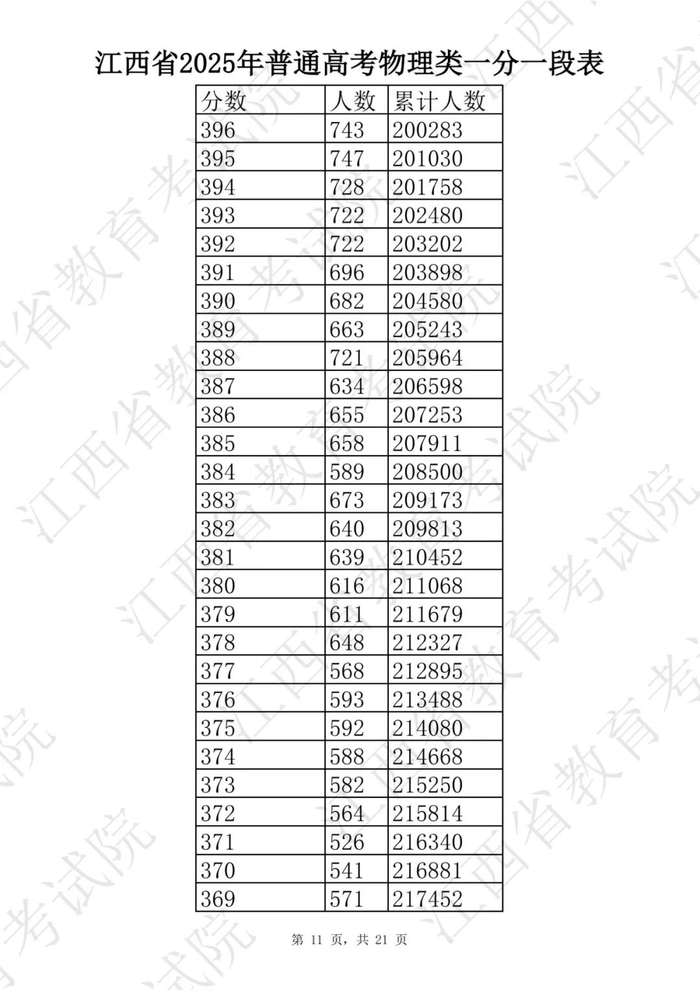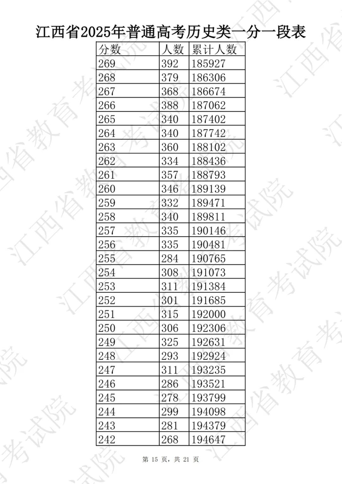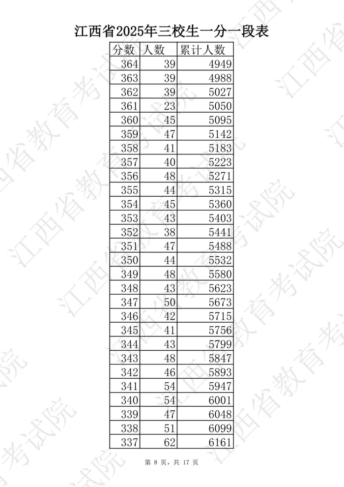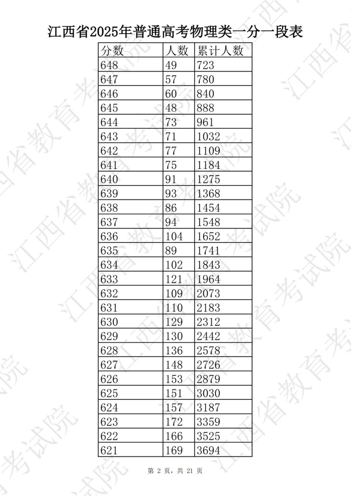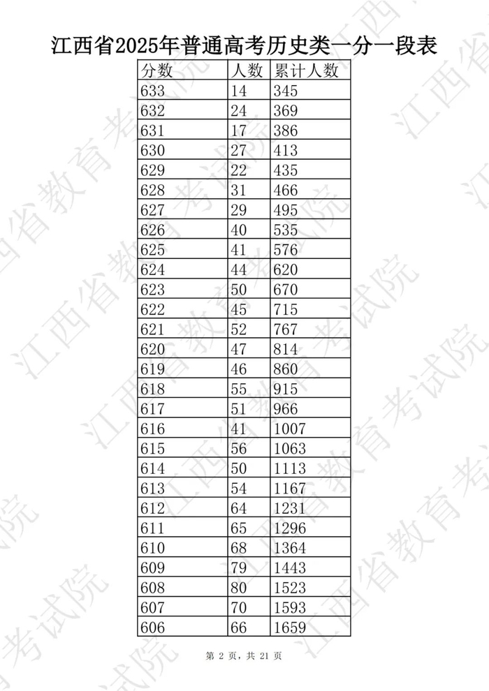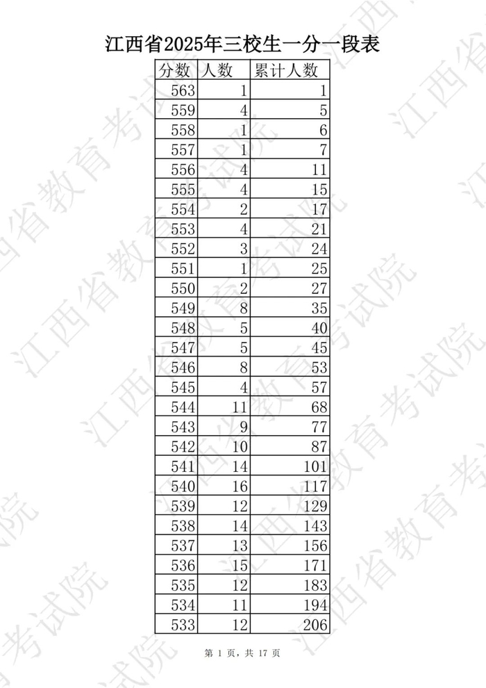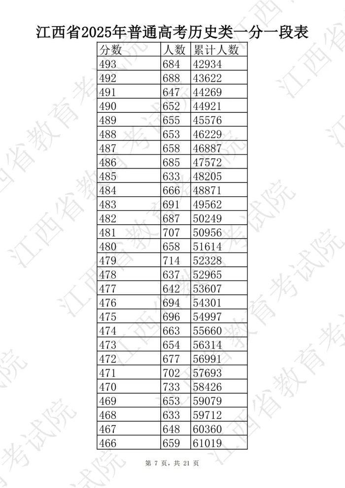 江西省2025普通高考一分一段表公布