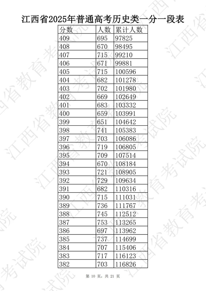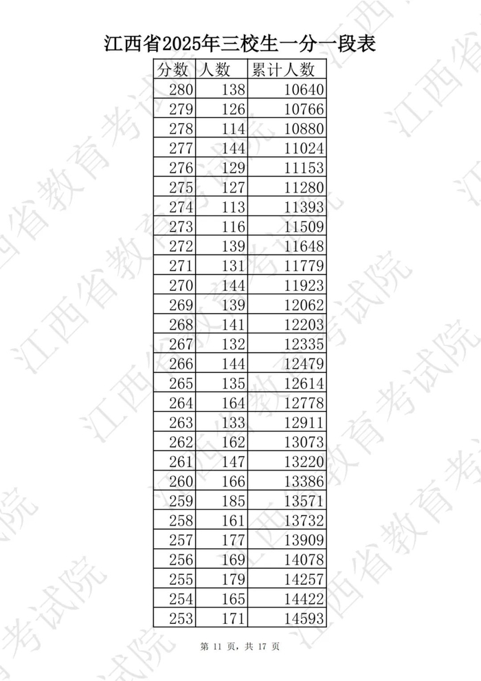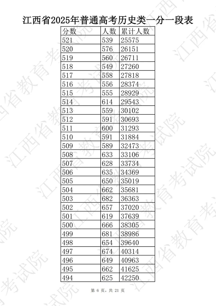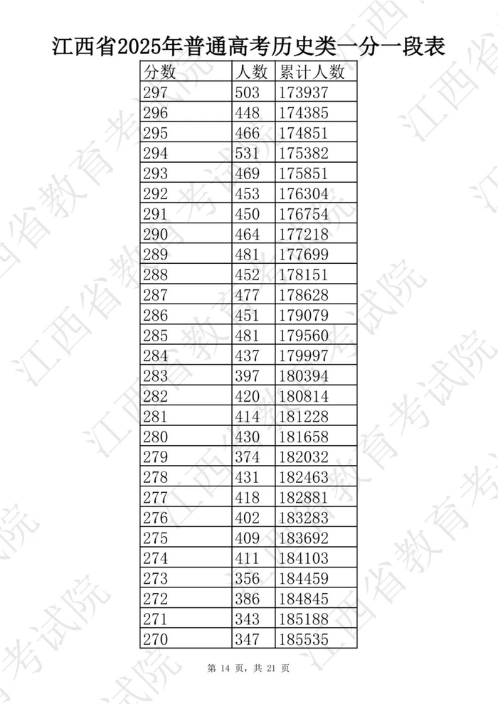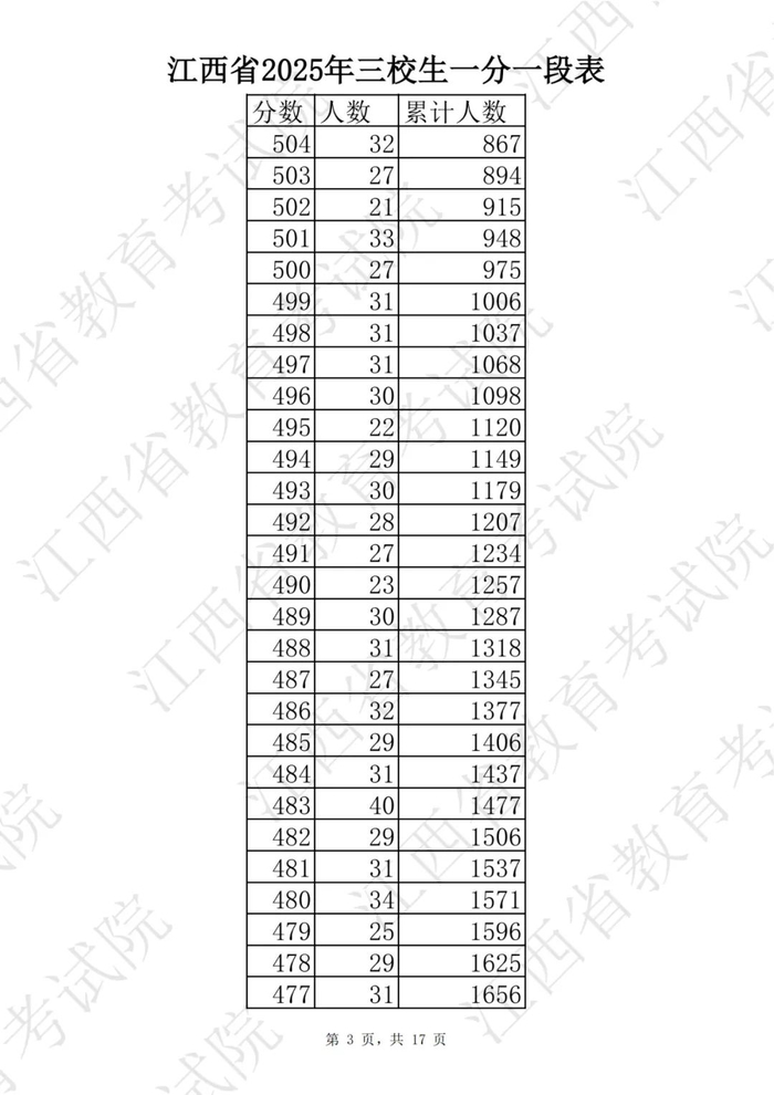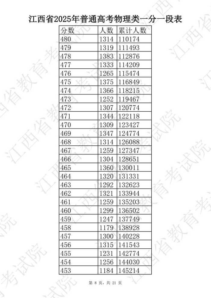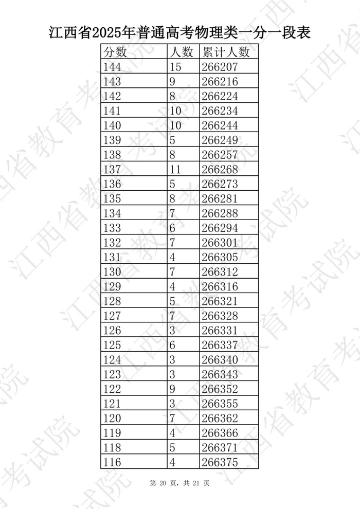 江西省2025普通高考一分一段表公布