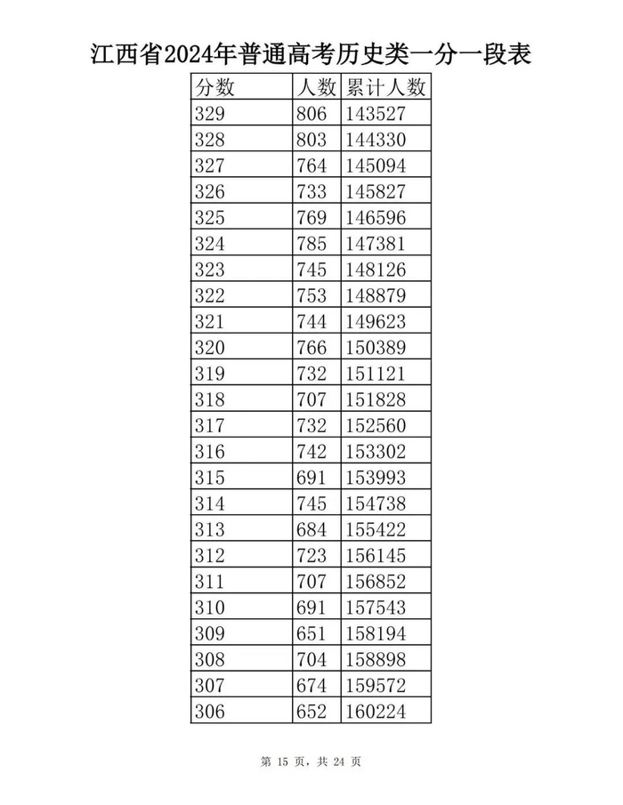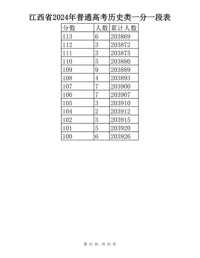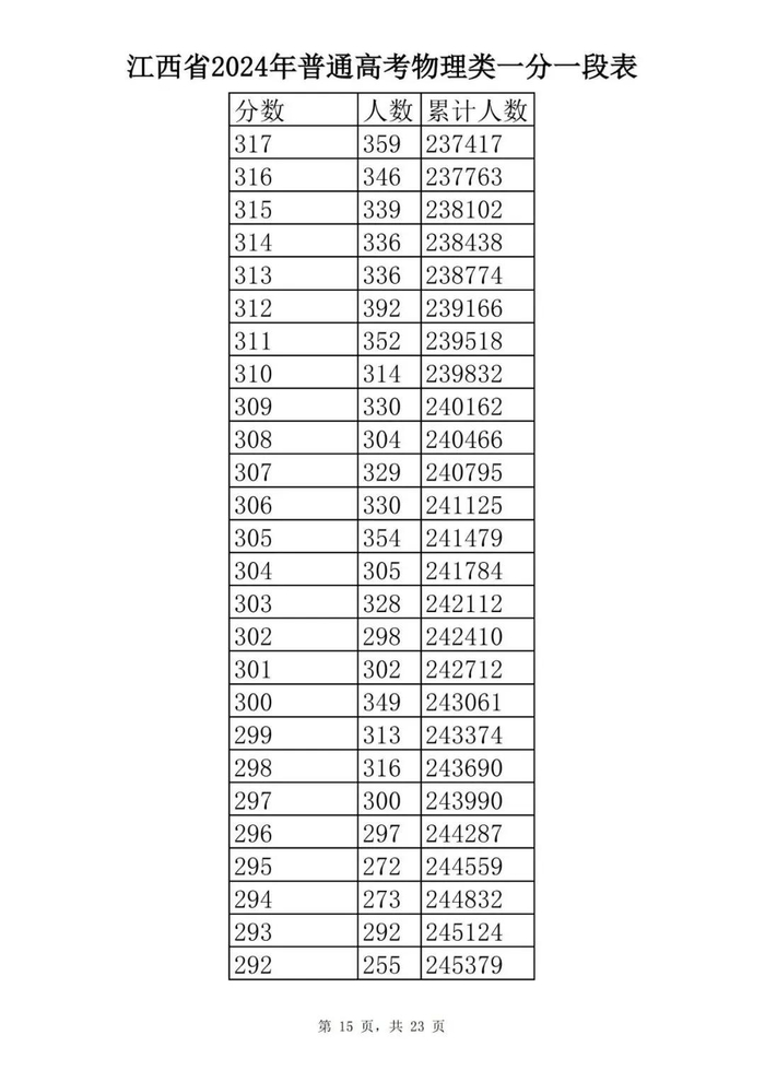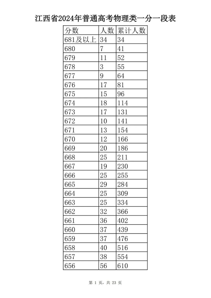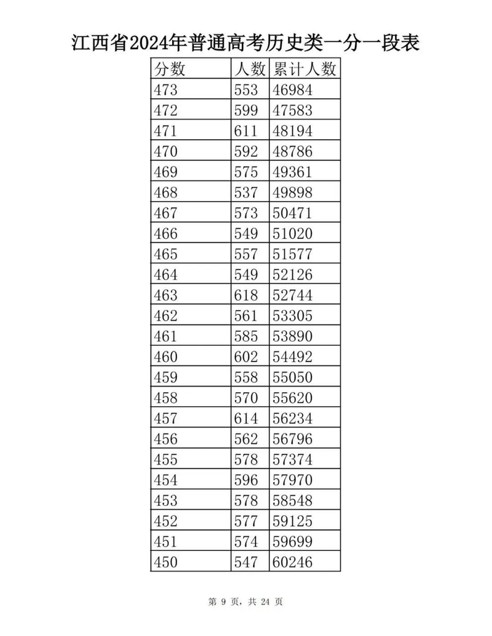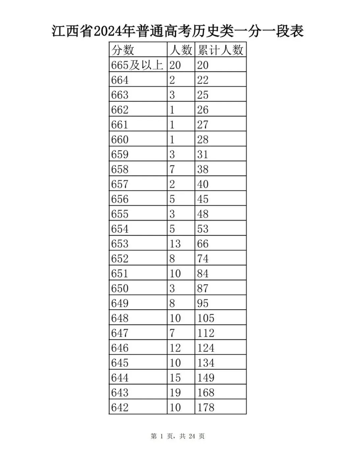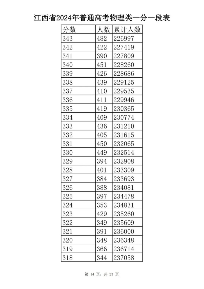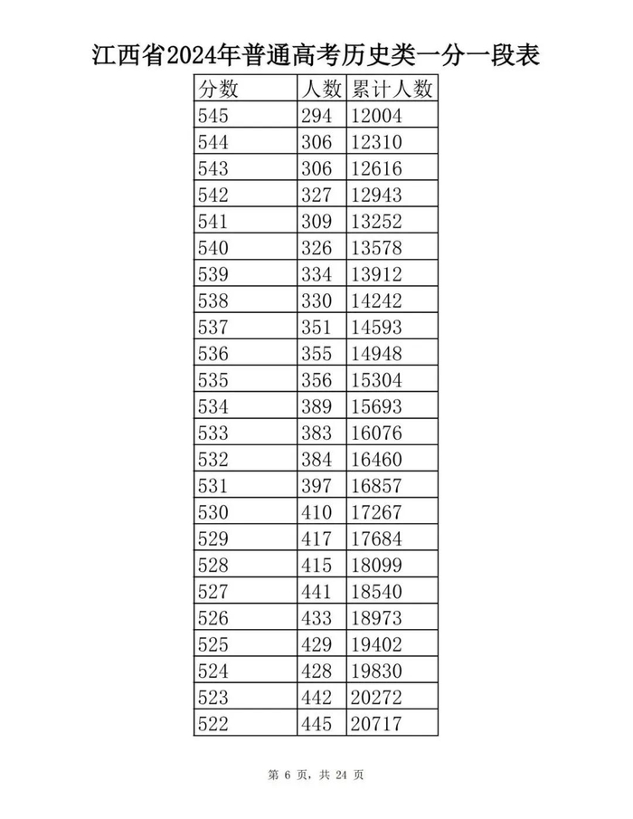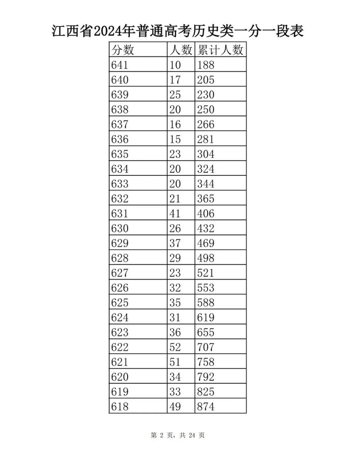 江西省2024年普通高考一分一段表供参考