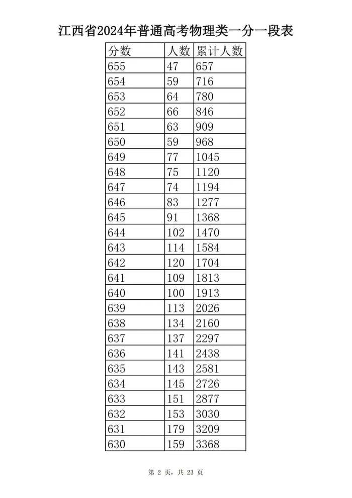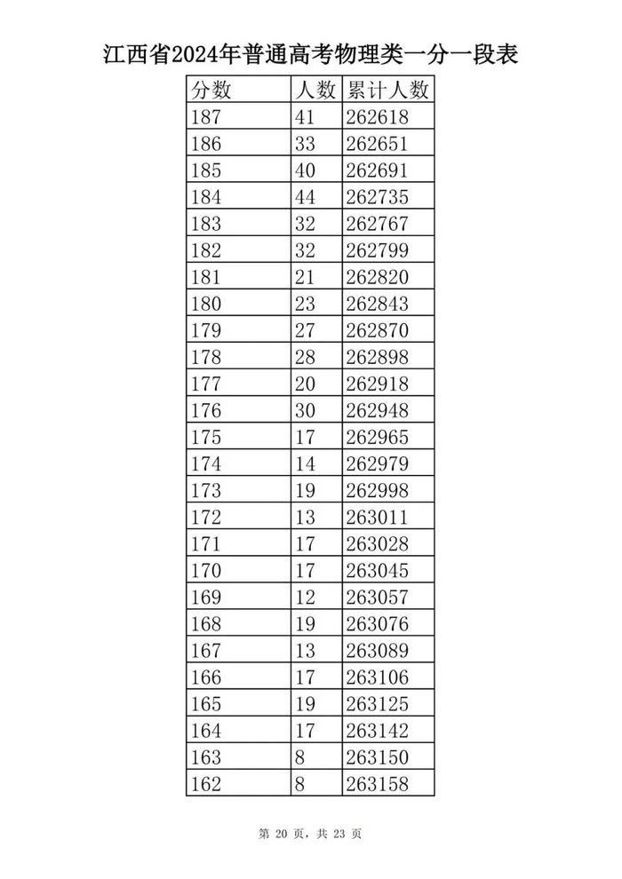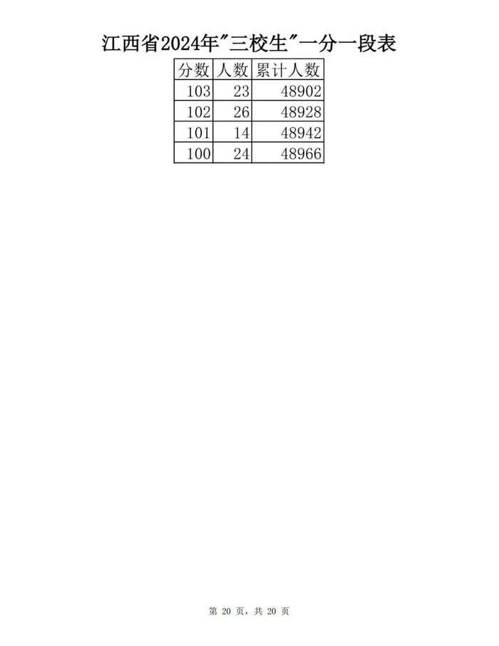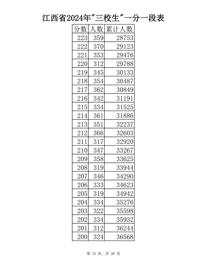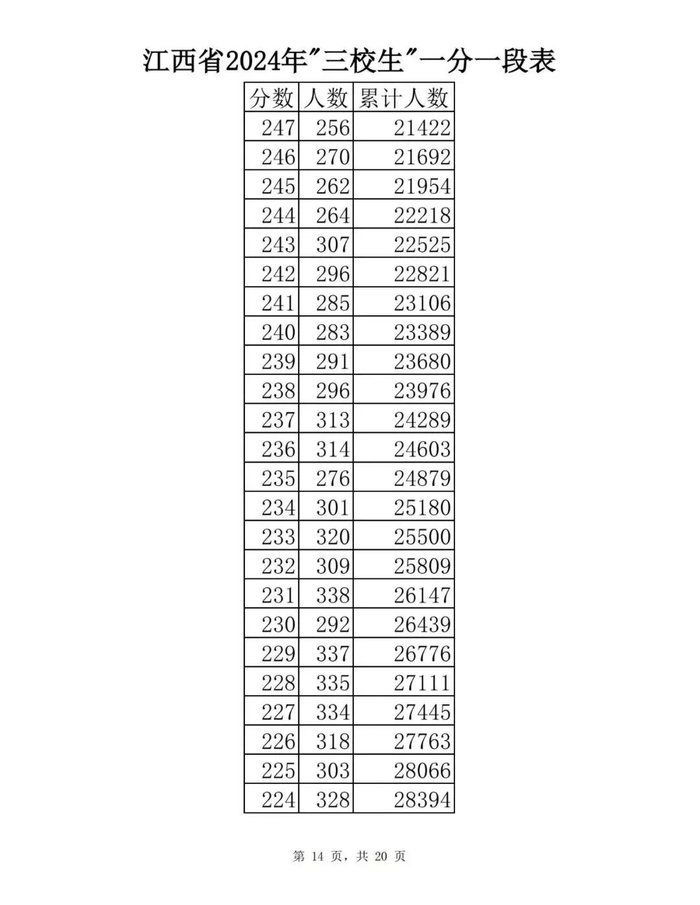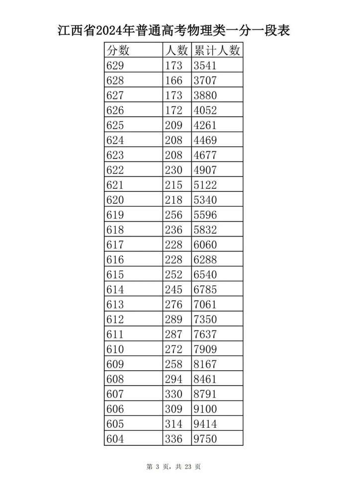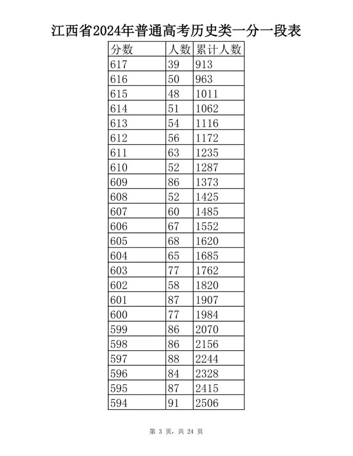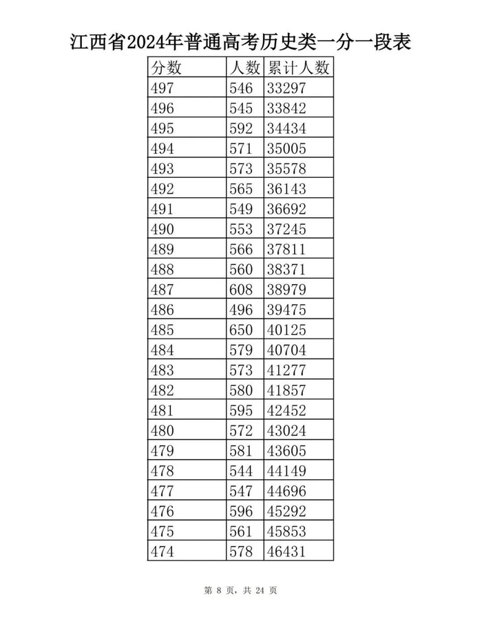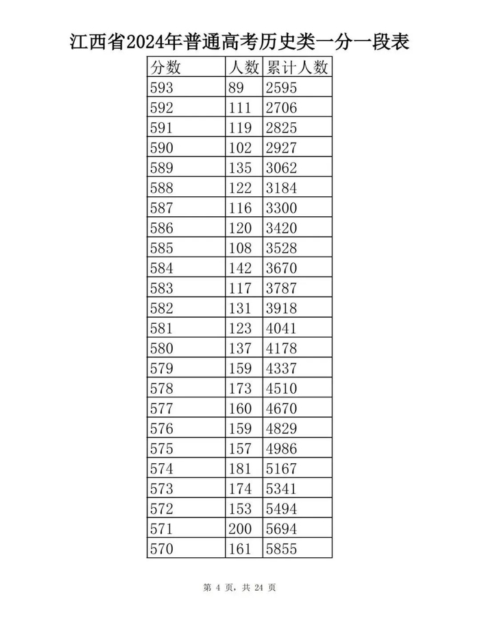 江西省2024年普通高考一分一段表供参考