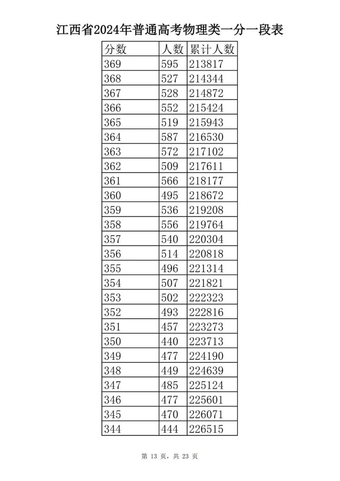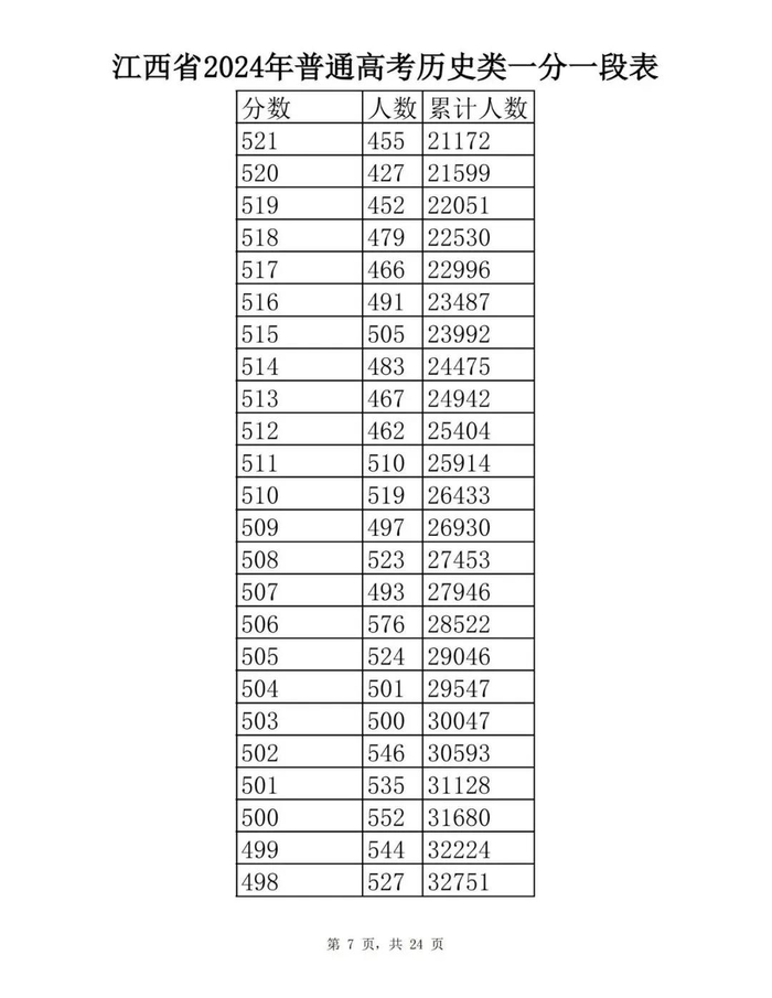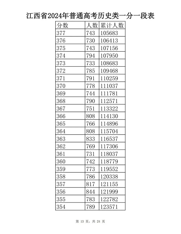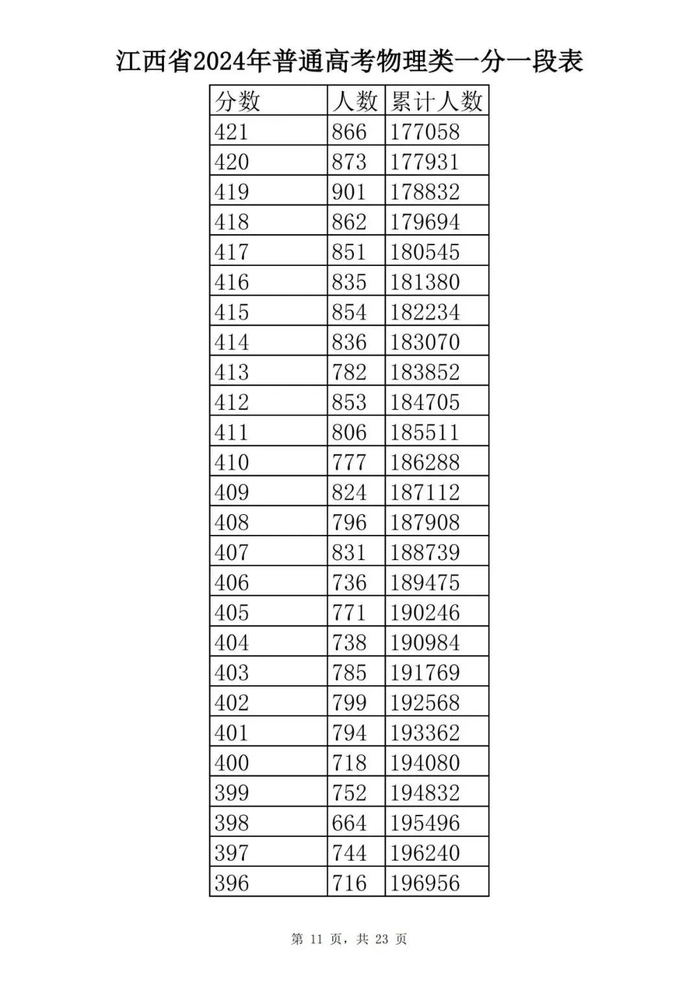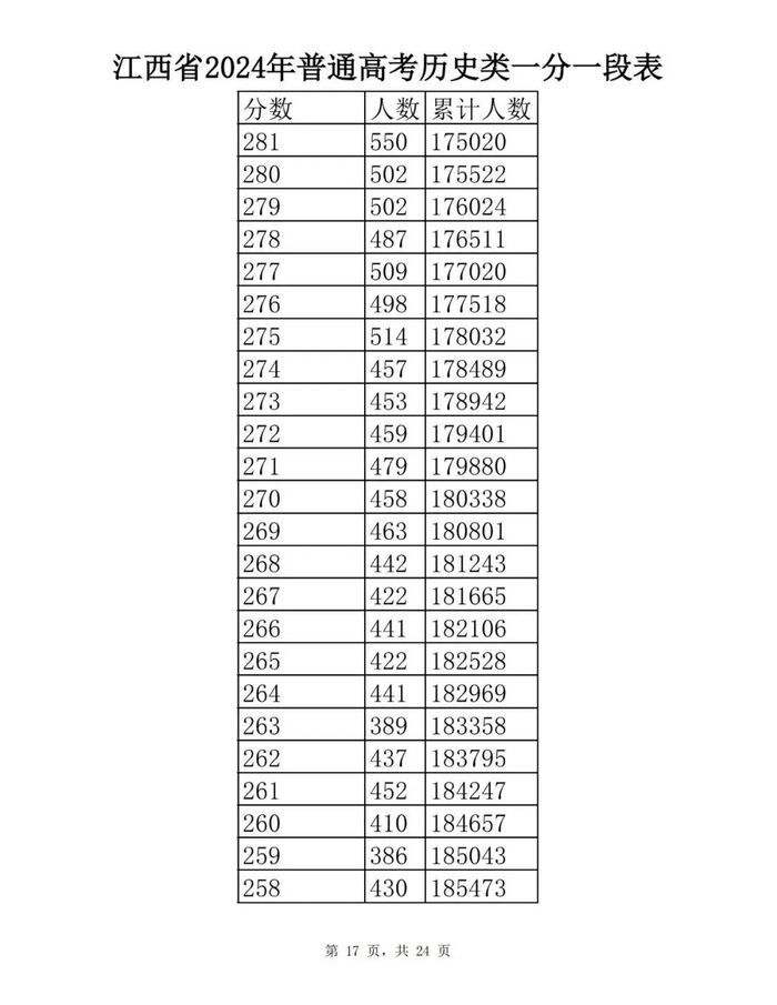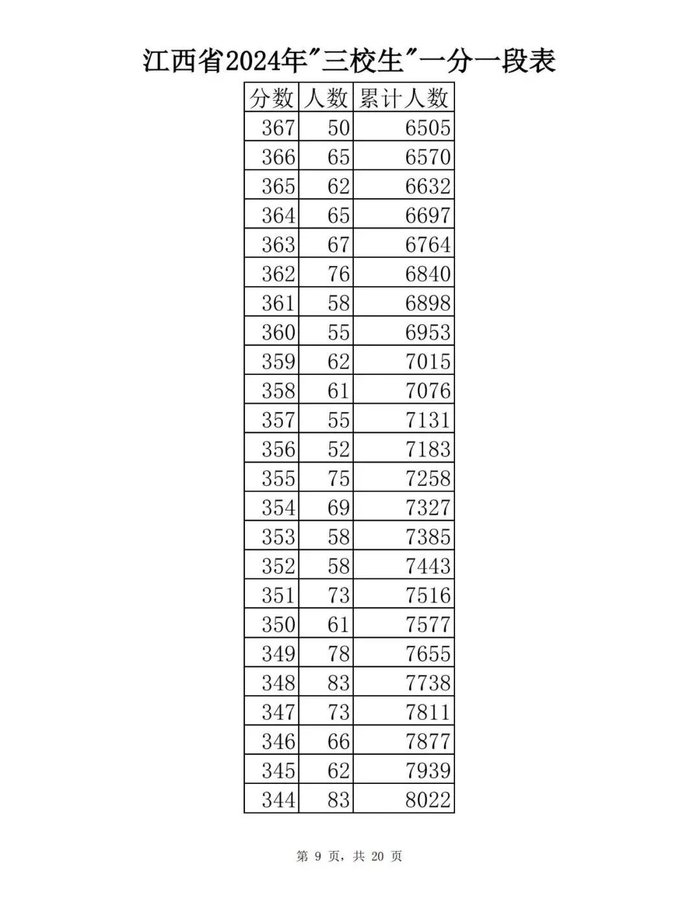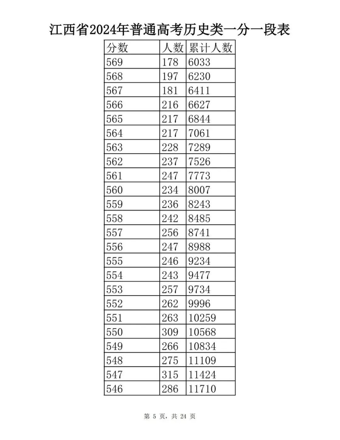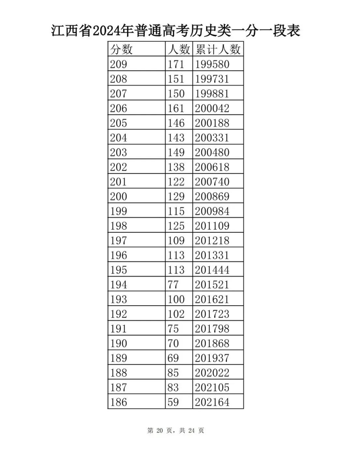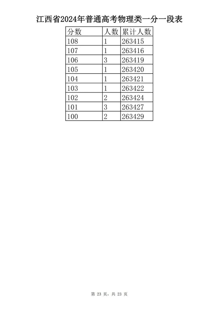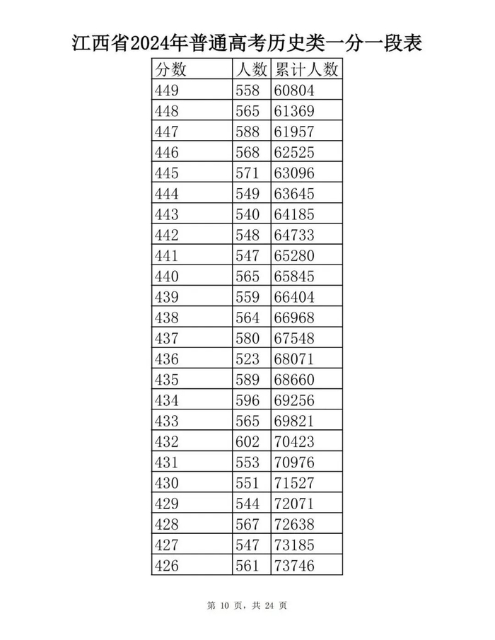 江西省2024年普通高考一分一段表供参考