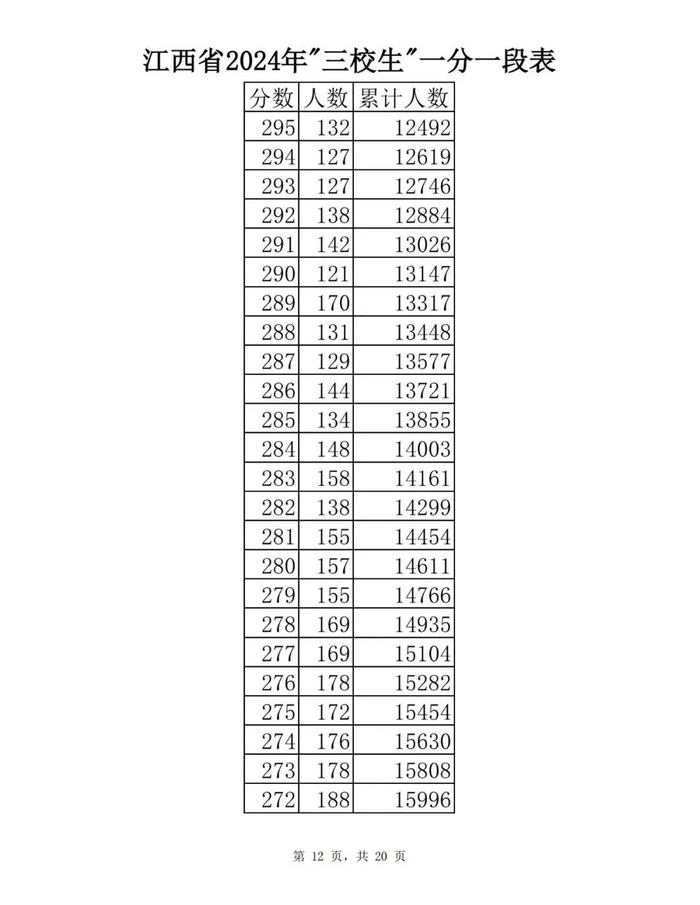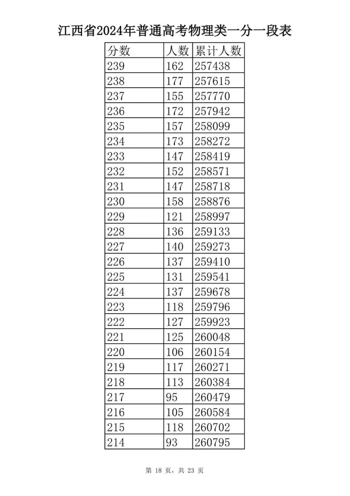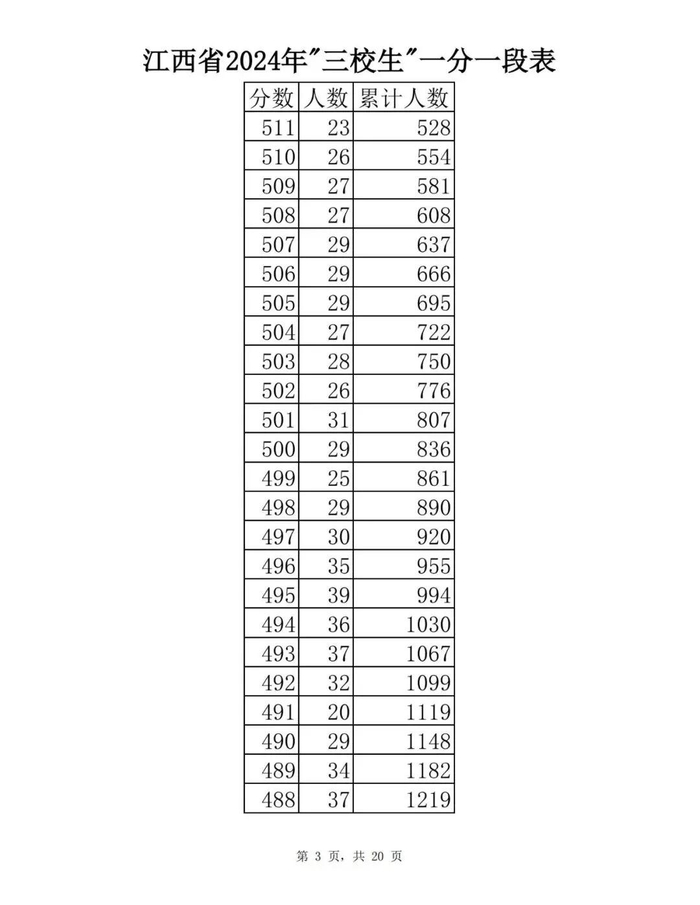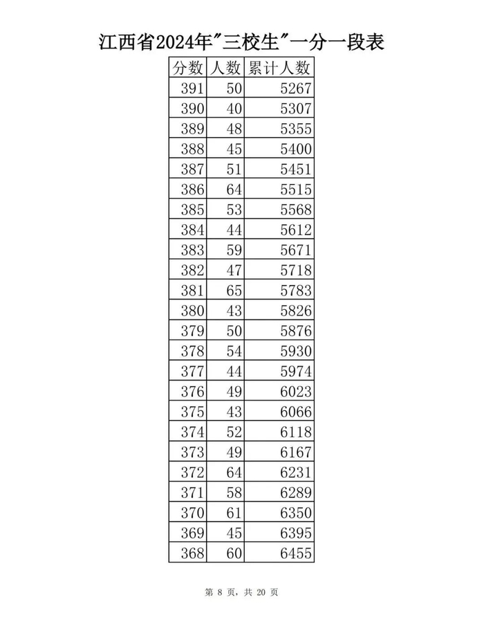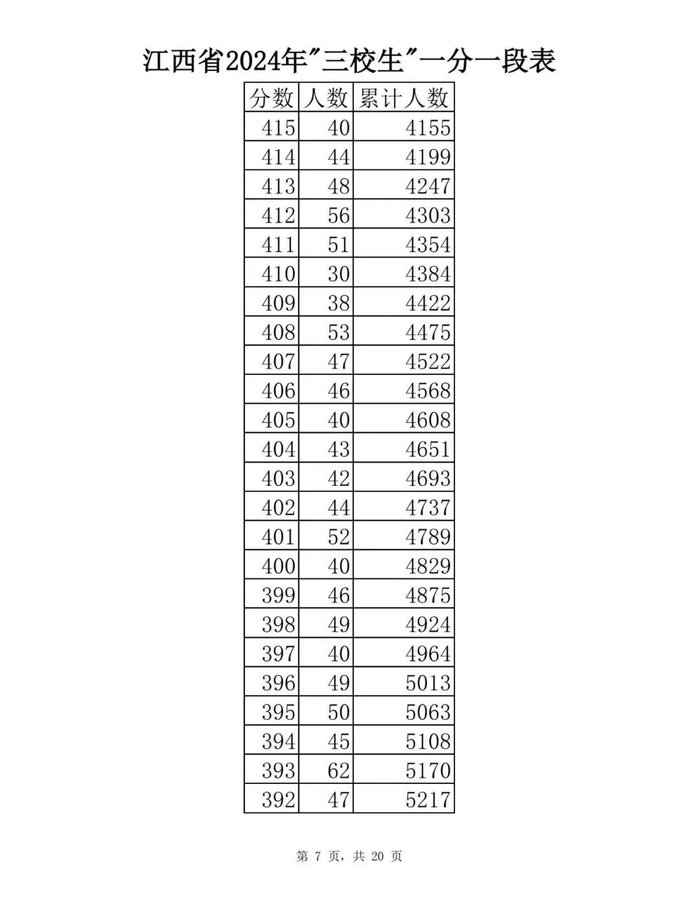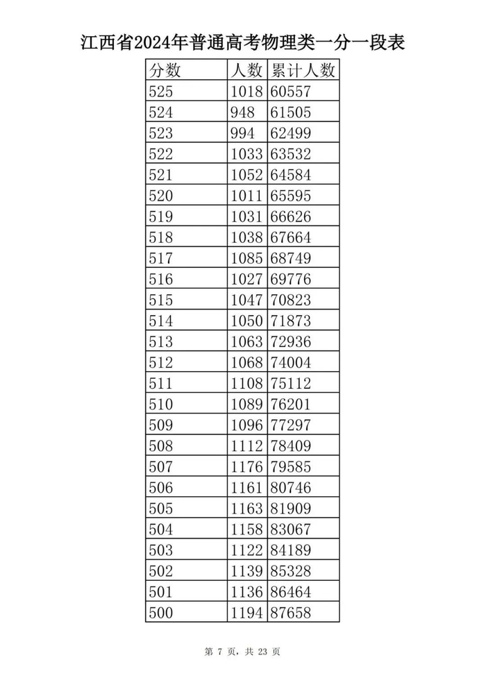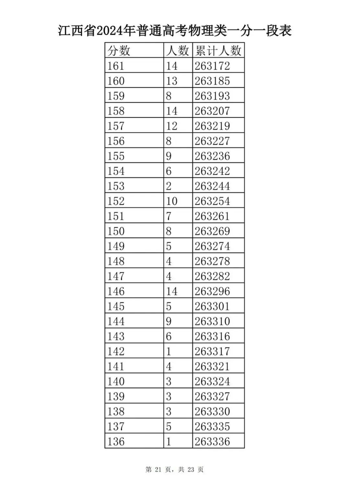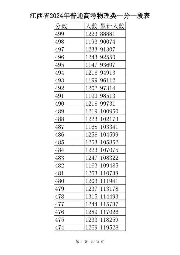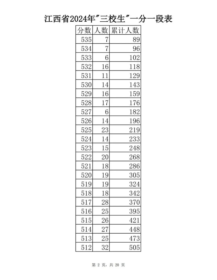 江西省2024年普通高考一分一段表供参考
