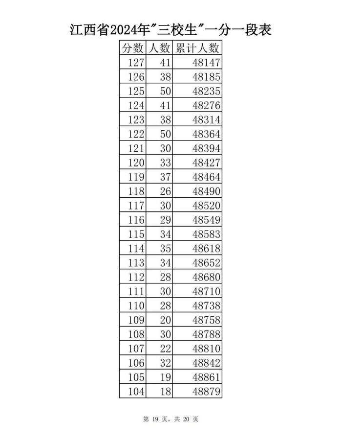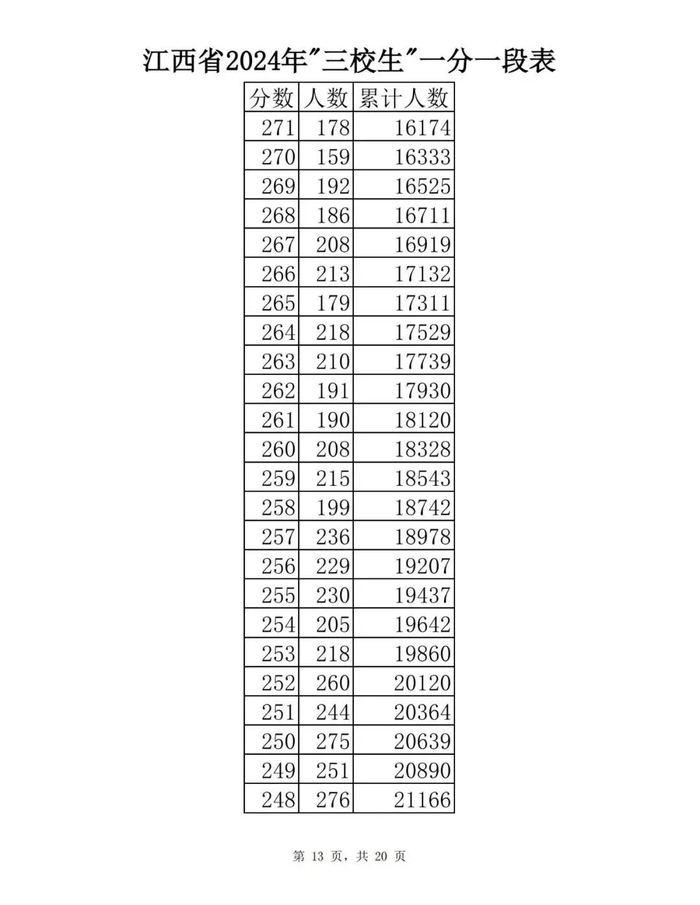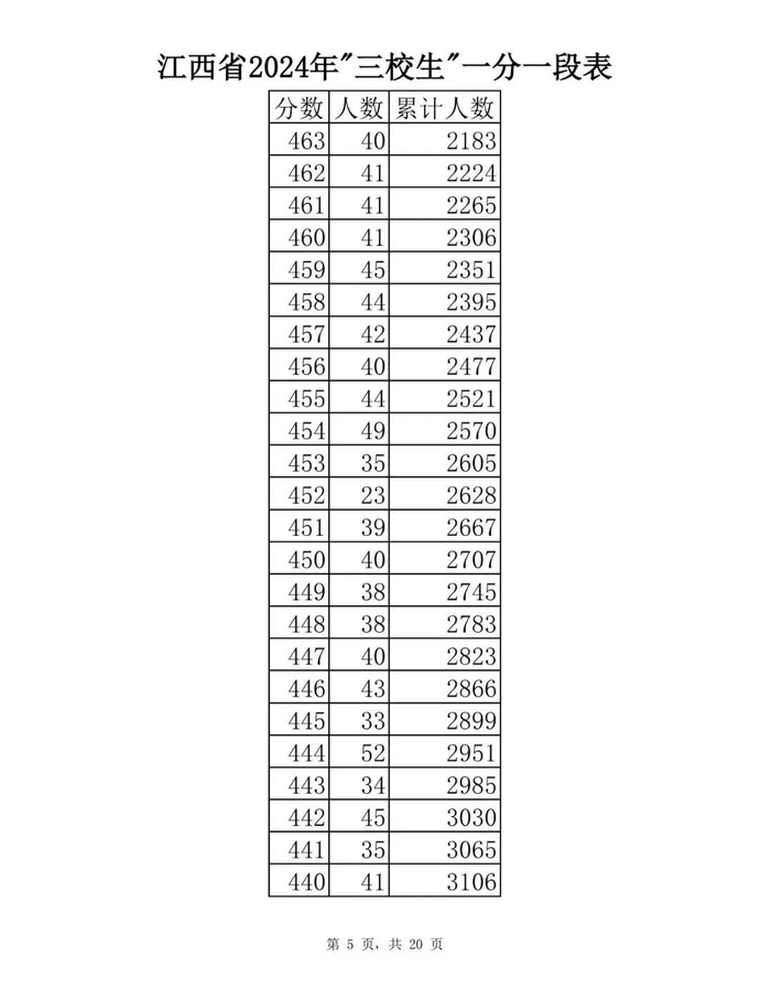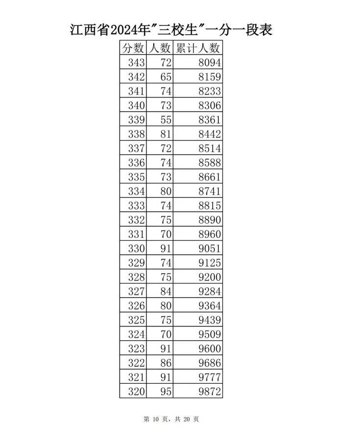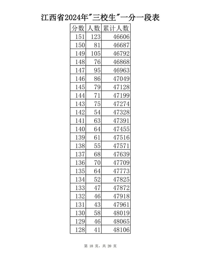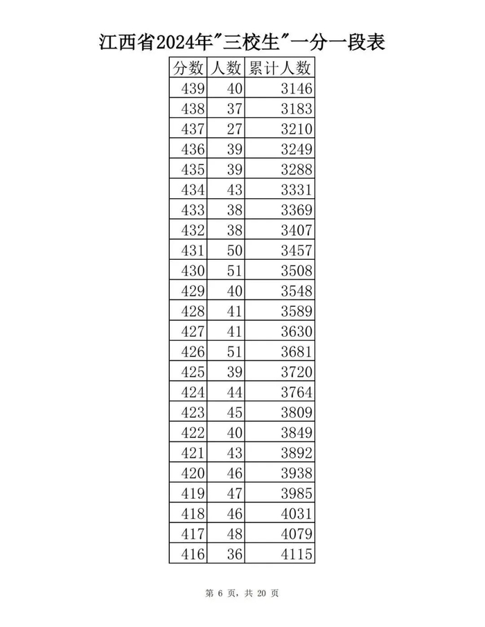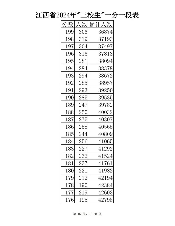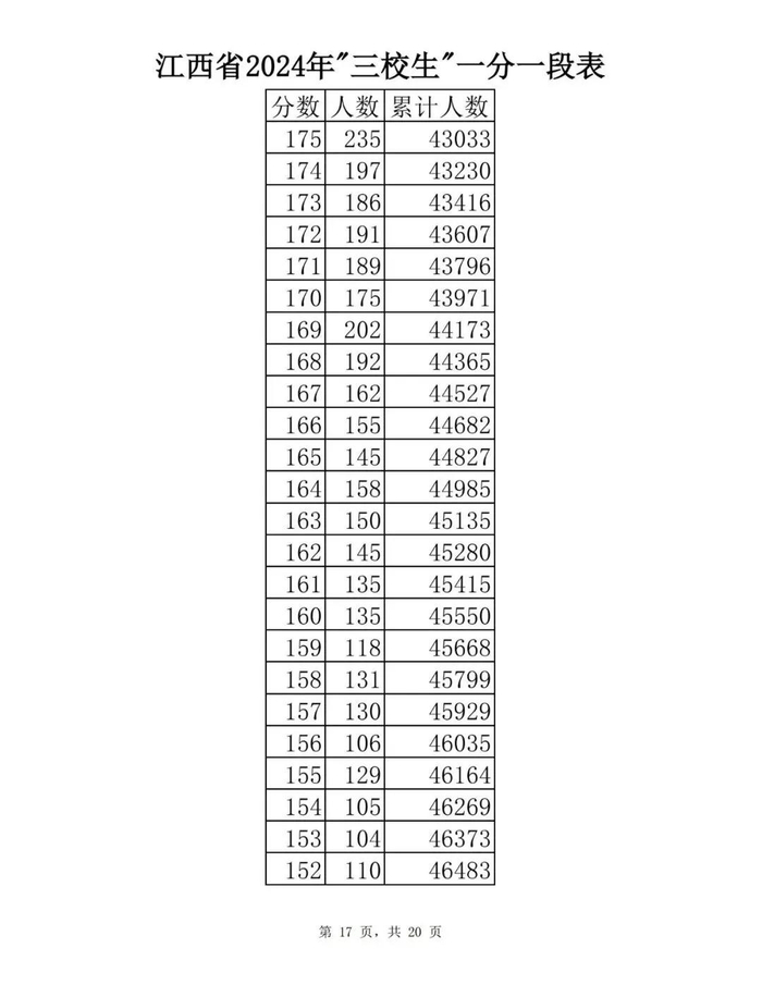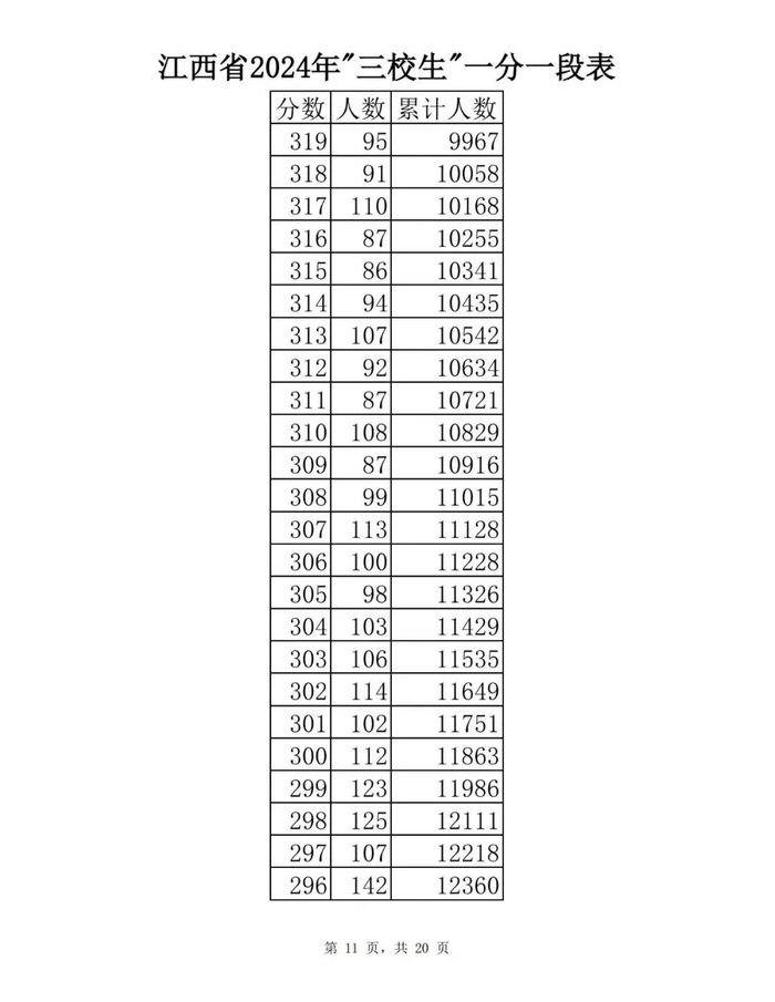 江西省2024年普通高考一分一段表供参考