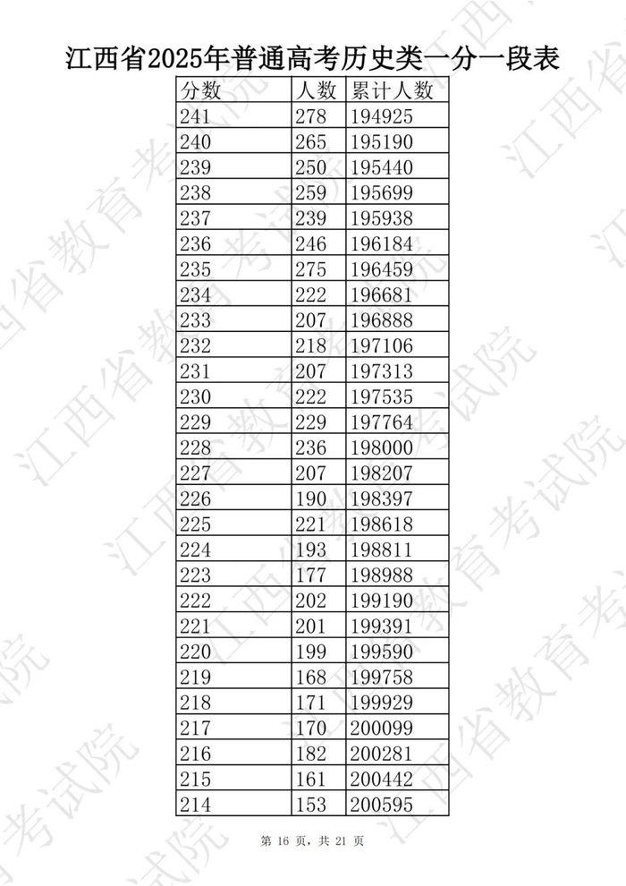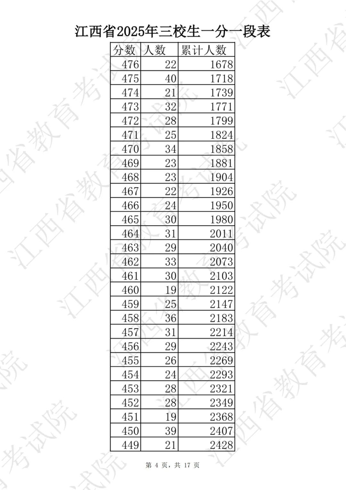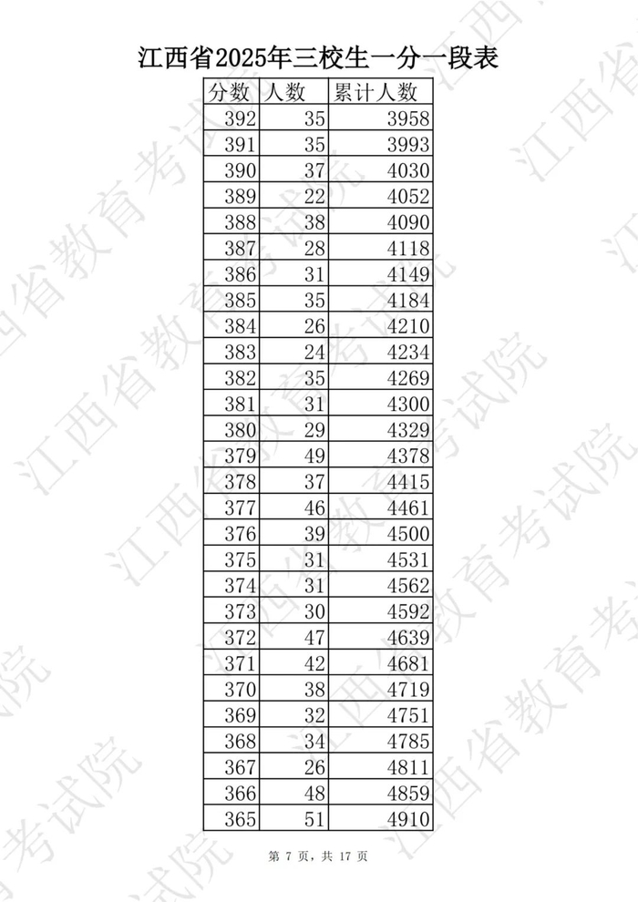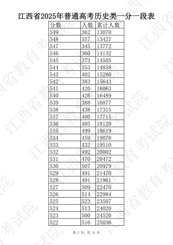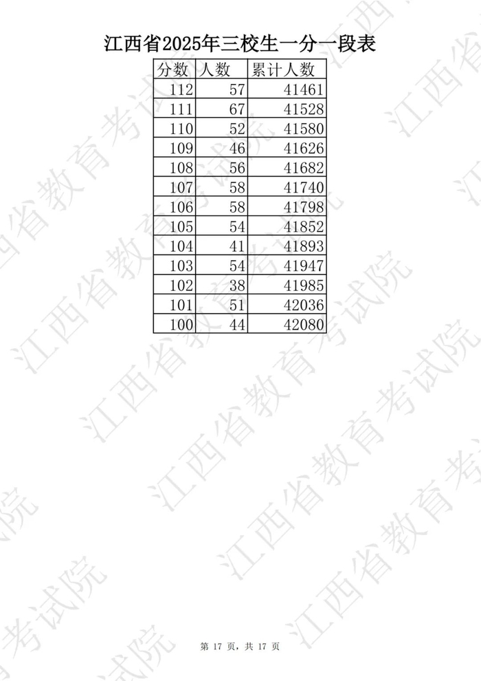 刚刚!2025年江西高考一分一段表公布!