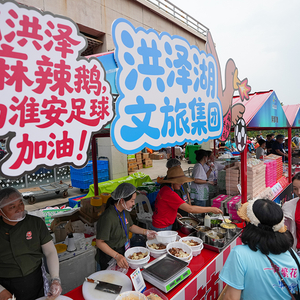 6月14日,球迷在江苏淮安“苏超”市集选购各类美食特产。新华社 资料图