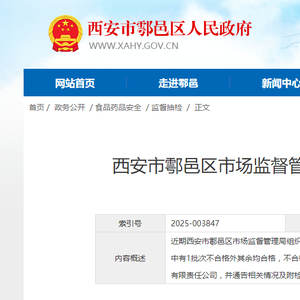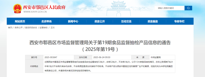 西安市鄠邑区市场监督管理局关于第19期食品监督抽检产品信息的通告(2025年第19号)
