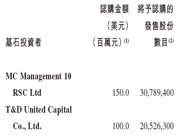 富卫集团是次IPO招股引入2名基石投资者,合共认购约2.50亿美元(约19.50亿港元)的发售股份,基石投资者包括阿布扎比投资公司Mubadala Capital认购1.50亿美元、T&D Holdings(8795.JP)认购1亿美元。