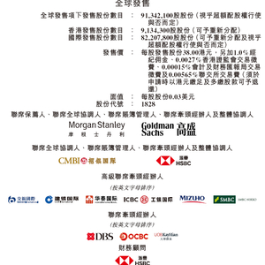 富卫集团,计划全球发售39134.21万股,其中90%为国际发售、10%为公开发售,另有15%超额配股权。每股发售价38.00港元,每手100股,最多募资约34.71亿港元。