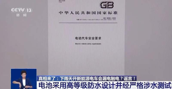 专家介绍,新能源电车电池普遍采用IP67或更高等级的防水设计,能在一定时间浸水的情况下保证完好,不存在漏电风险。