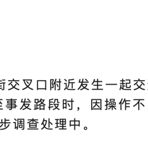 据“平安密云”微信公众号消息,2025年6月26日13时许,在北京市密云区育才路与东门大街交叉口附近发生一起交通事故。