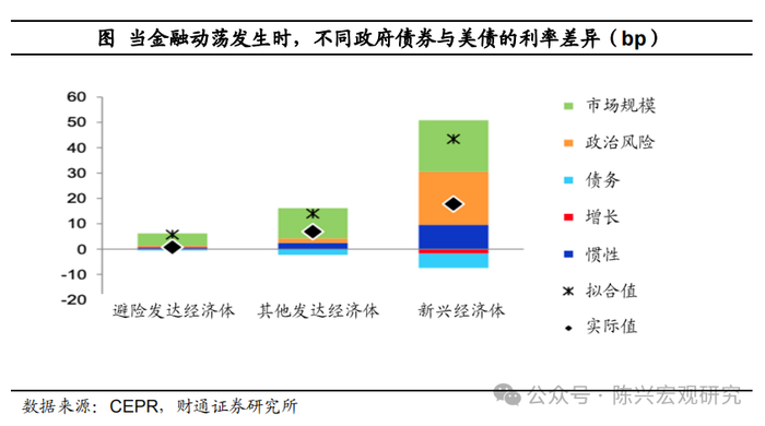 美债安全、稳定。想要获得避险资金青睐,要点在于政治风险低、债券市场规模大、以及投资者信任的惯性。美国国债因美国政府信用背书,国债市场兼具广度与深度,且过去在市场动荡时表现良好,因而被市场普遍认为是安全资产。CEPR研究发现,每逢金融市场动荡时,美债利率平均下降10bp,德国、日本、瑞士和英国等避险发达经济体政府债券也较为稳定,而新兴经济体的政府债券较美债平均上升10bp。因此,海外投资者长期持有美债,其一大原因在于“安全”。