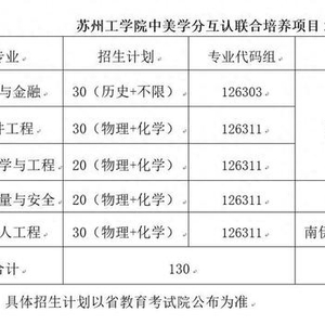 经江苏省教育厅批准,苏州工学院与美国威斯康星大学欧克莱尔分校、威斯康星大学斯托特分校、南伊利诺伊大学爱德华兹维尔分校合作中美学分互认联合培养项目(双学位),采用1.5+2+0.5的培养模式,项目学生按中美大学制订的联合培养方案赴美学习两年,第一至第三学期在中国学习,第四至第七学期在美国学习,第八学期返回中国学习,所修课程符合中美双方学位和毕业要求,获颁中美大学双学位和中方毕业证书(如不出国,无法获得国内学位)。项目学生的中方学费同其他普通学生,美方学杂费由美方另行收取,每年约21万人民币(含学费、保险费和食宿费)。本项目专业课以英语授课为主,需有一定的英语基础。本项目不接收无出国意愿的考生。